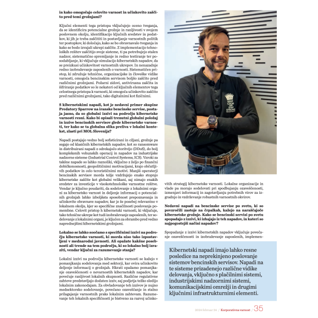 V preteklih desetletjih so bencinski servisi prevladujoče veljali za preprosta mesta, namenjena zgolj oskrbi vozil z gorivom. Danes smo priča prelomnici, ko ti servisi postajajo pravo digitalno središče, prepleteno s kompleksnimi mrežami in najnovejšo tehnologijo. V tej dinamični transformaciji ima skupina Actual I.T. ključno vlogo, saj aktivno prenavlja IT okolje bencinskih servisov MOL v Sloveniji in jim s tem postavlja nove standarde za prihodnost maloprodaje. Napredna digitalizacija hkrati prinaša številne izzive, ki odpirajo novo poglavje na področju varnosti bencinskih servisov. Skupaj s strokovnjakom za kibernetsko varnost, Alenom Jamškom iz skupine Actual I.T., smo se pogovarjali, kako se prepletanje fizične in digitalne varnosti izkaže za ključno pri ohranjanju integritete poslovanja.